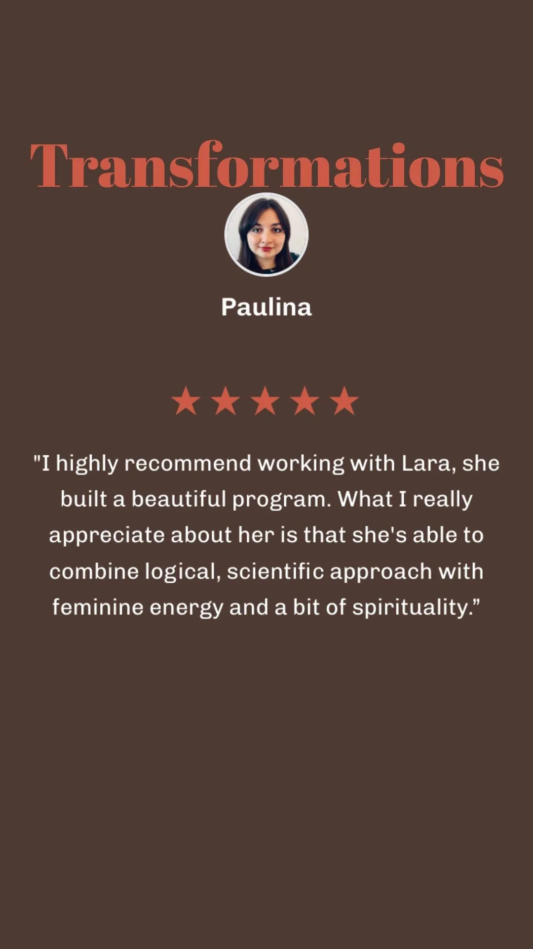 "I highly recommend working with Lara, she built a beautiful program. What I really appreciate about her is that she's able to combine logical, scientific approach with feminine energy and a bit of spirituality.”